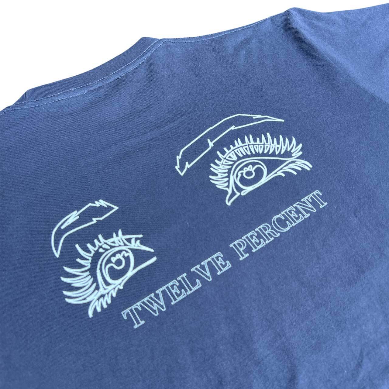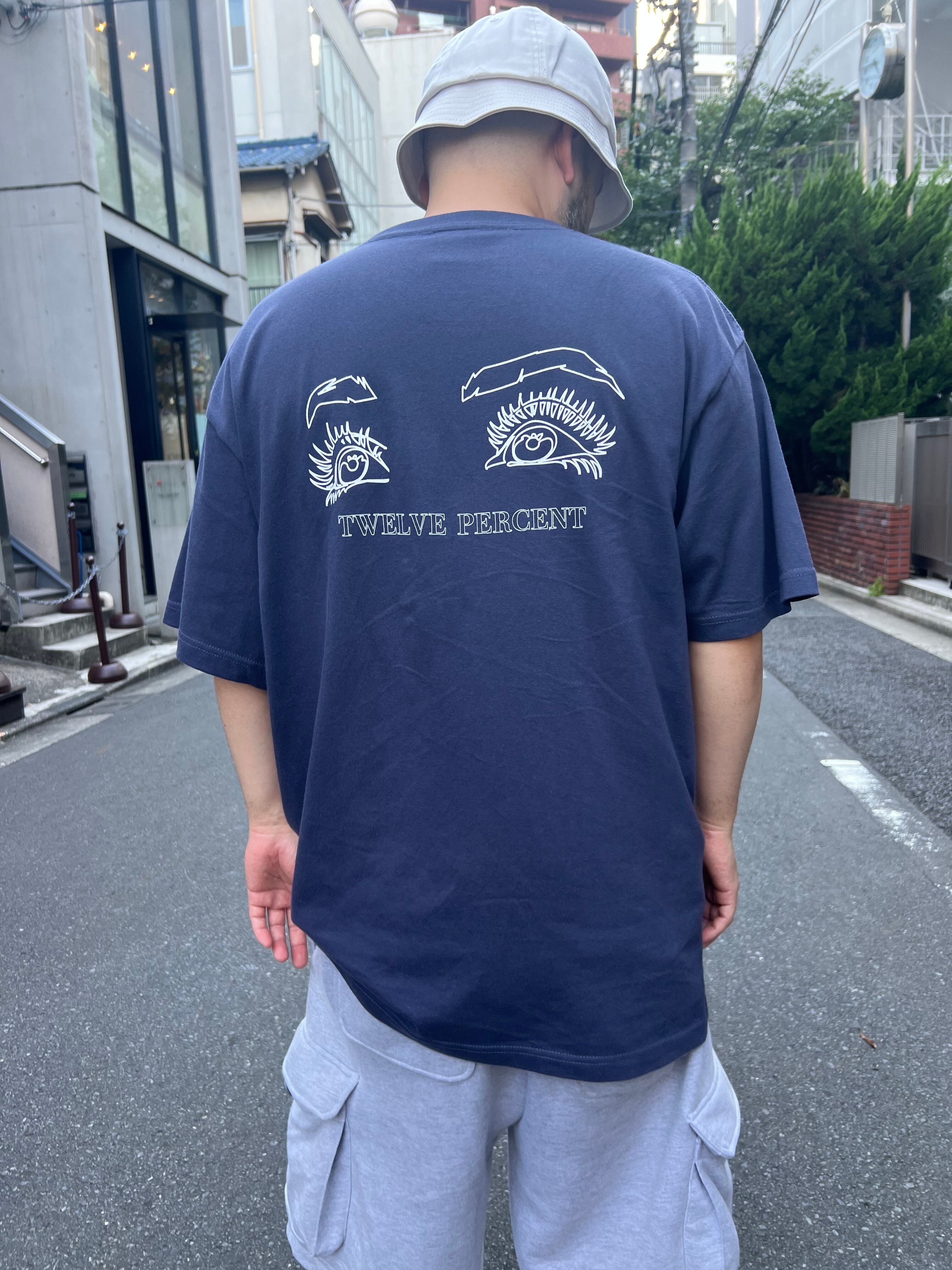 後ろはプリント、左胸は刺繍を施し前と後ろで違う雰囲気にしたTシャツ。